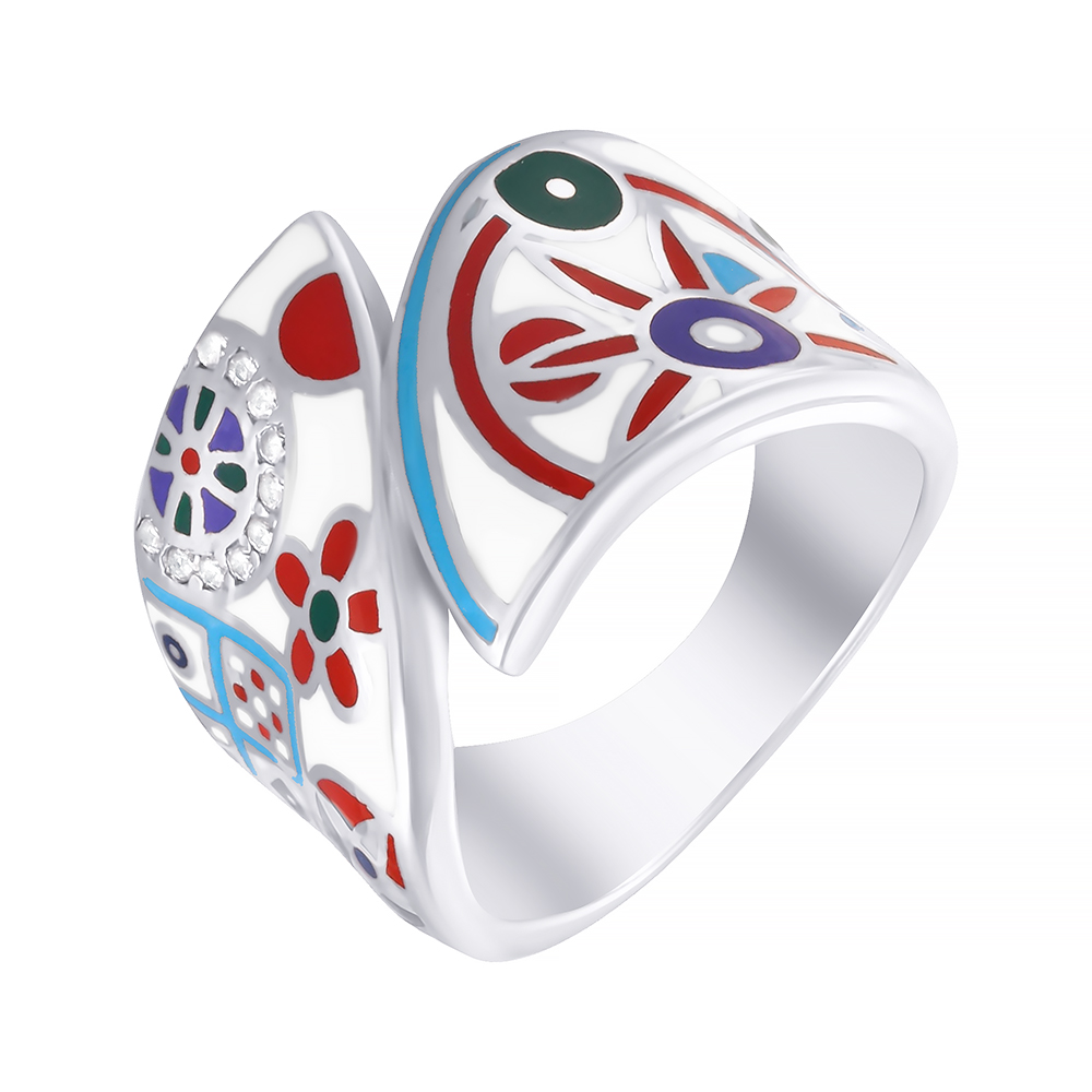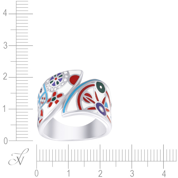 Кольцо из серебра 925 пробы с фианитами и эмалью