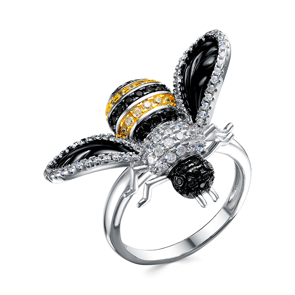 Кольцо из серебра 925 пробы с фианитами и эмалью