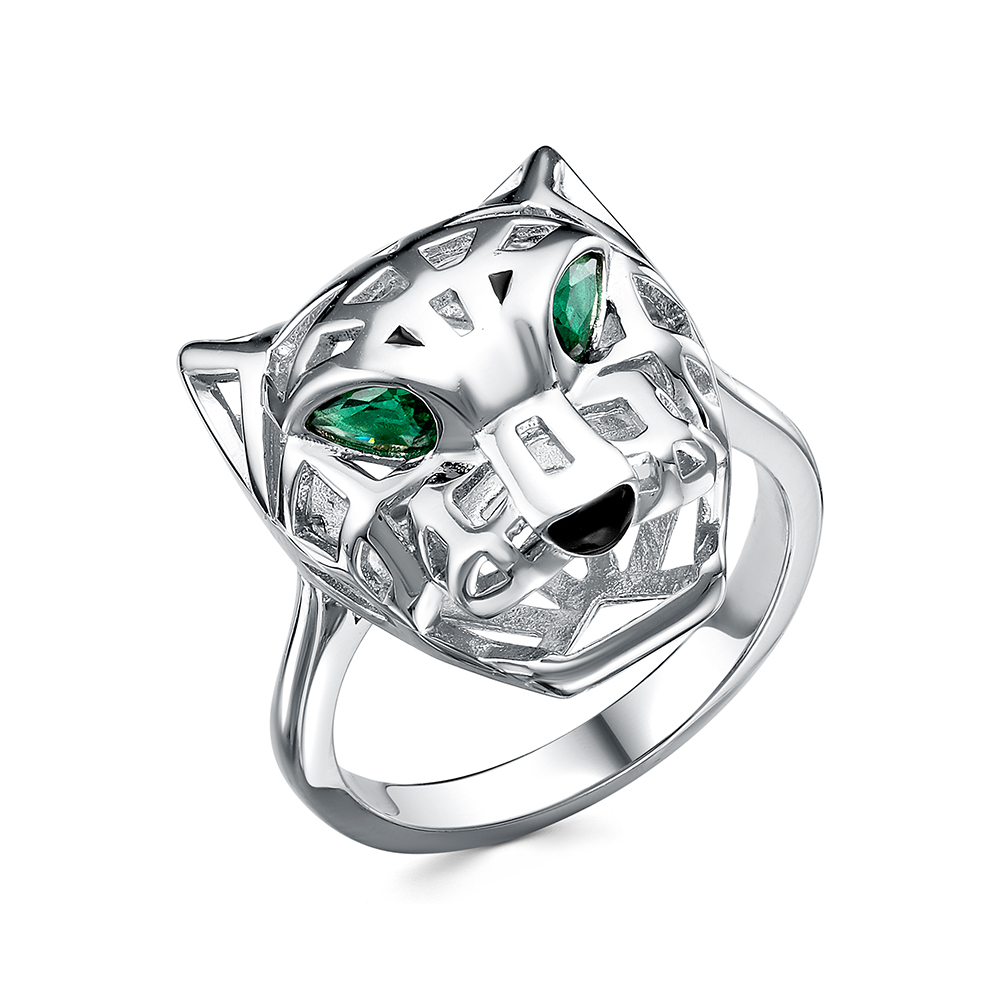 Кольцо из серебра 925 пробы с фианитами и эмалью