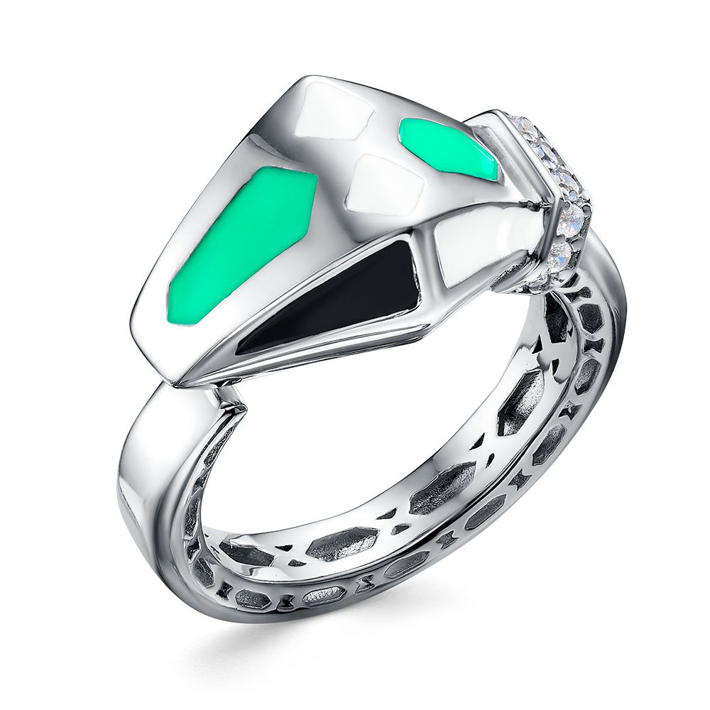 Кольцо из серебра 925 пробы с фианитами и эмалью