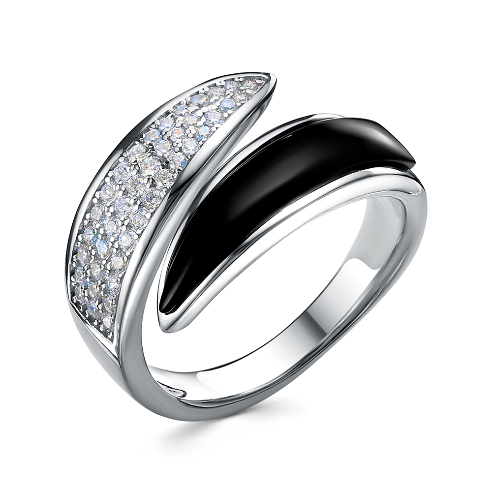 Кольцо из серебра 925 пробы с фианитами и ониксом