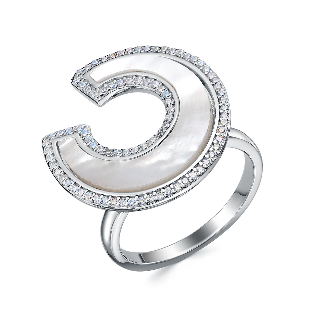 Кольцо из серебра 925 пробы с фианитами и перламутром