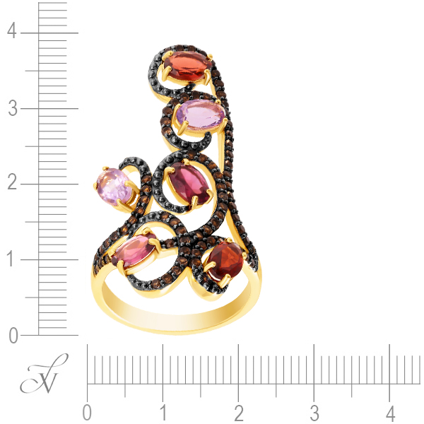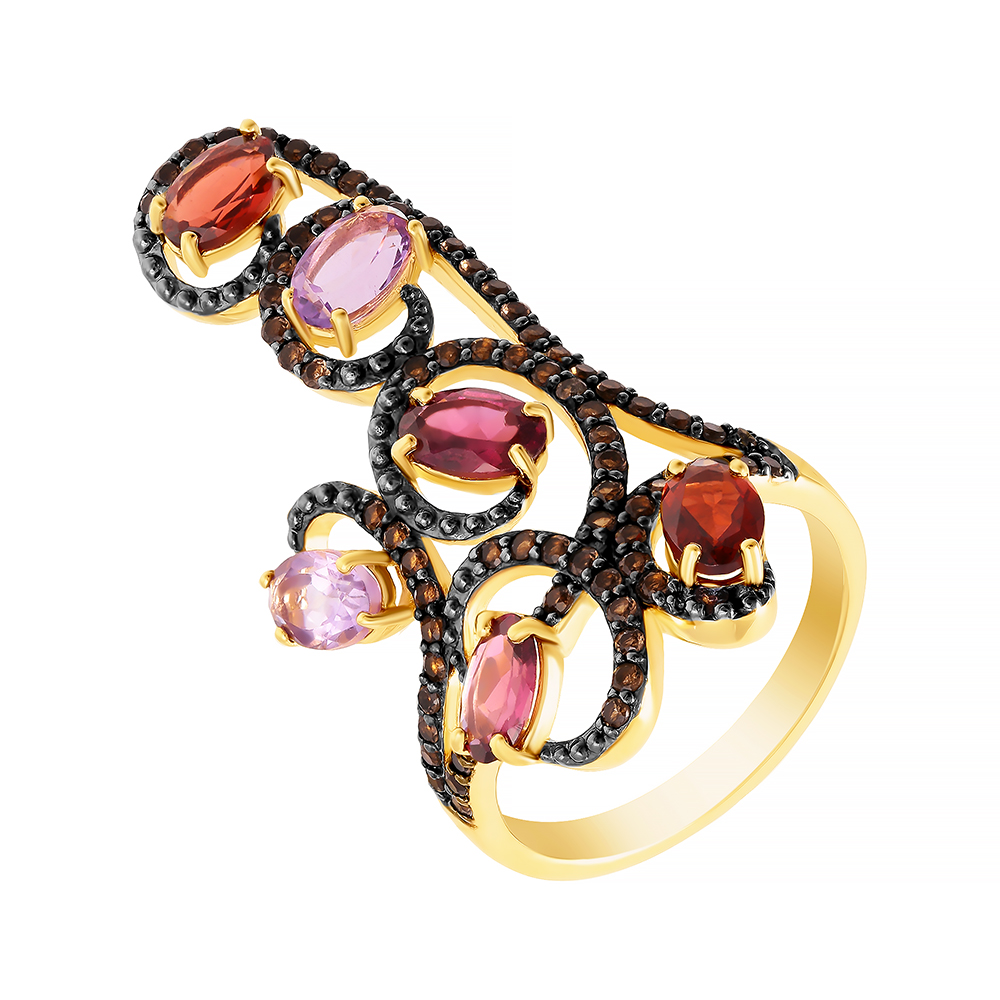 Кольцо из серебра 925 пробы с гранатами, аметистами, родолитами и раухтопазами