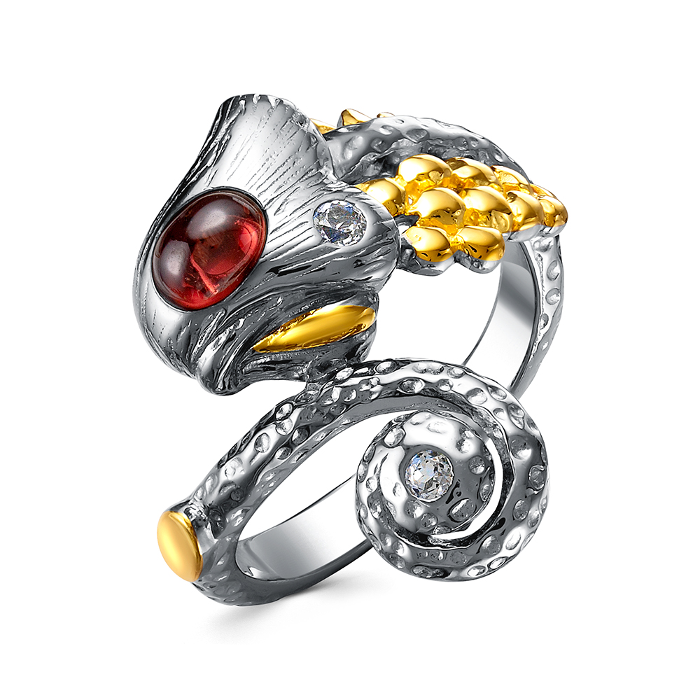 Кольцо из серебра 925 пробы с гранатами и топазами