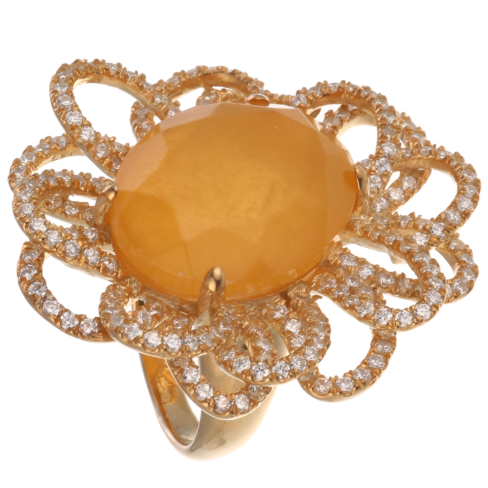 Кольцо из серебра 925 пробы с кальцитом и фианитами