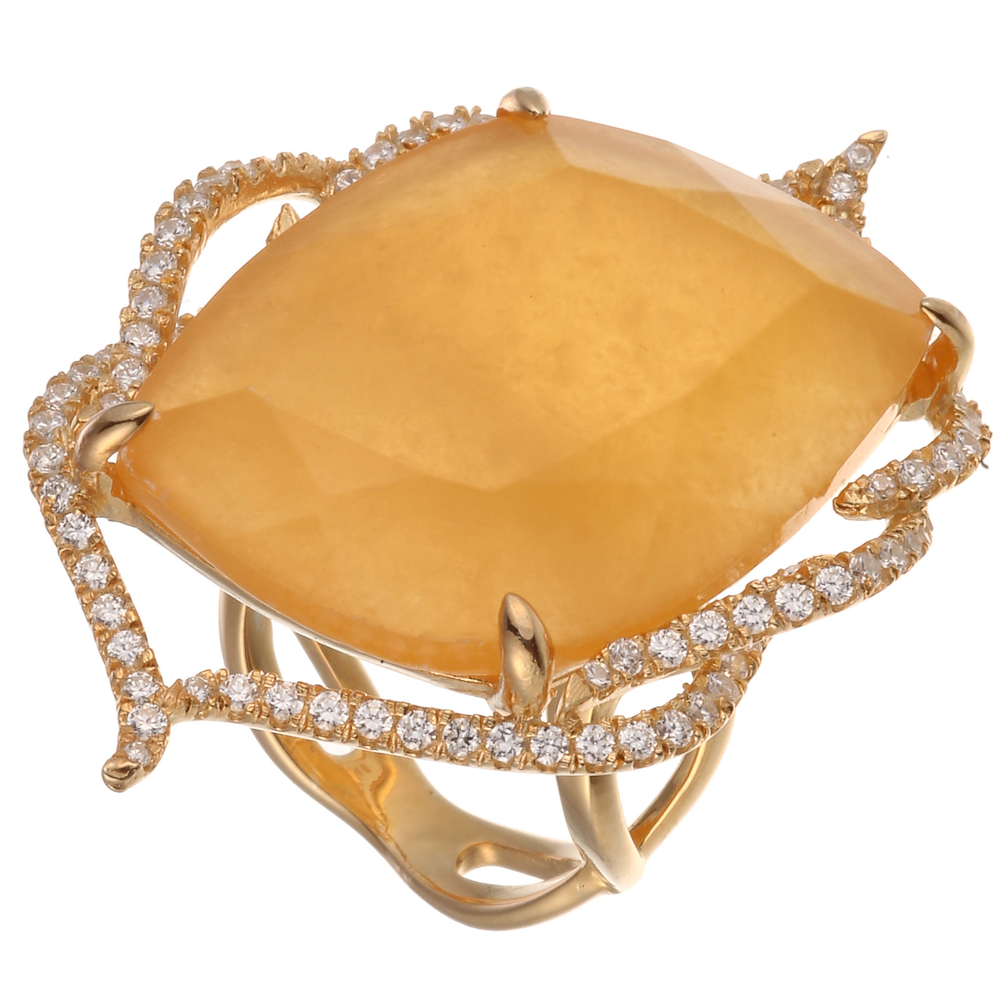 Кольцо из серебра 925 пробы с кальцитом и фианитами