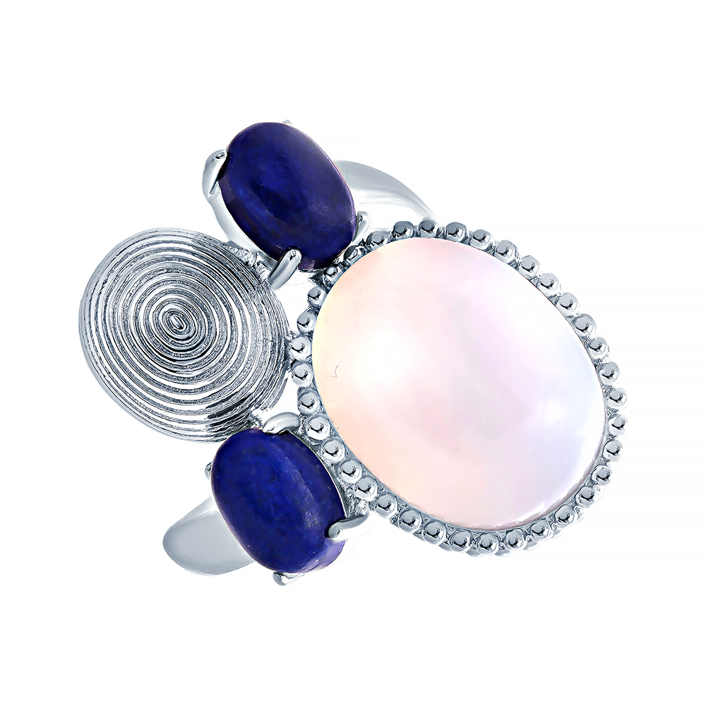 Кольцо из серебра 925 пробы с халцедонами и лазуритами