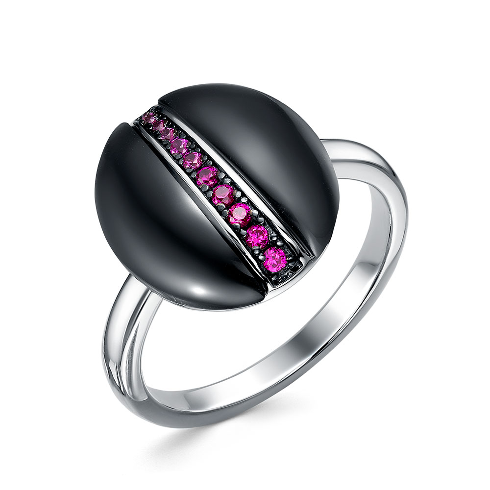 Кольцо из серебра 925 пробы с корундами и ониксом