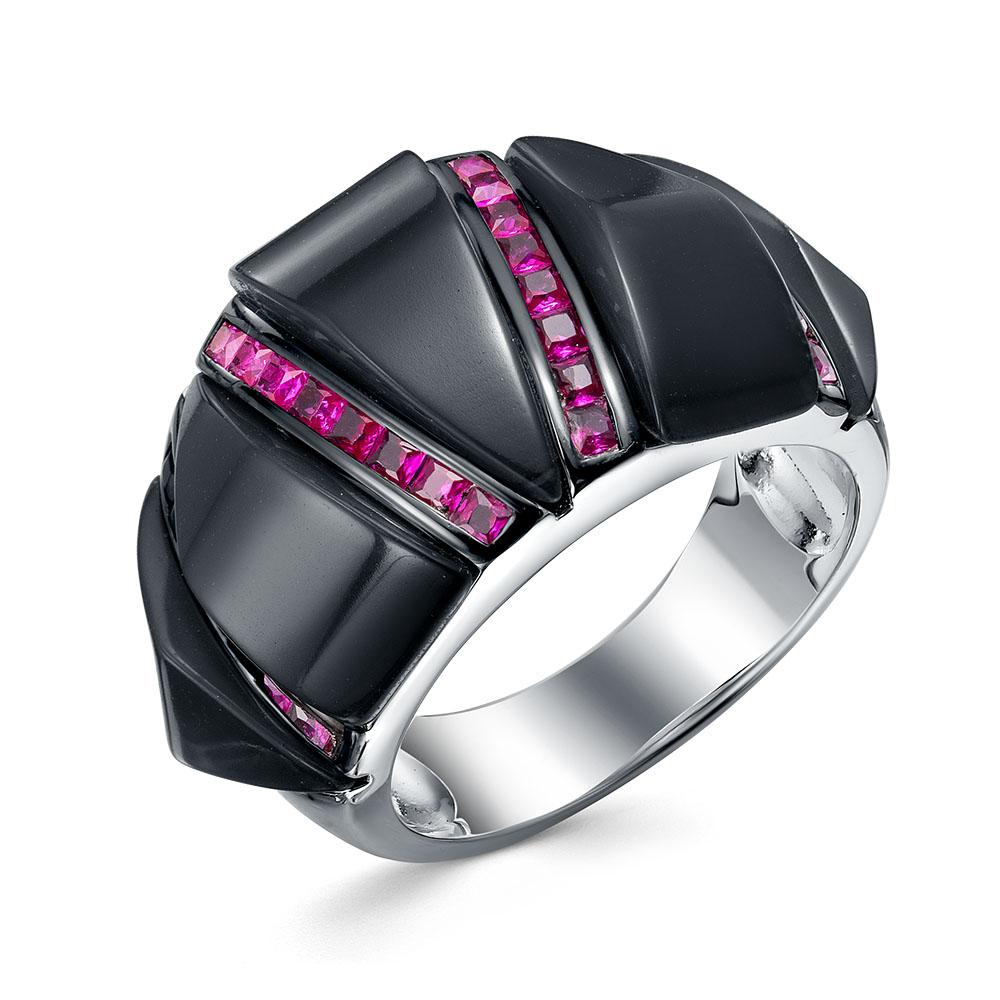 Кольцо из серебра 925 пробы с корундами и ониксом