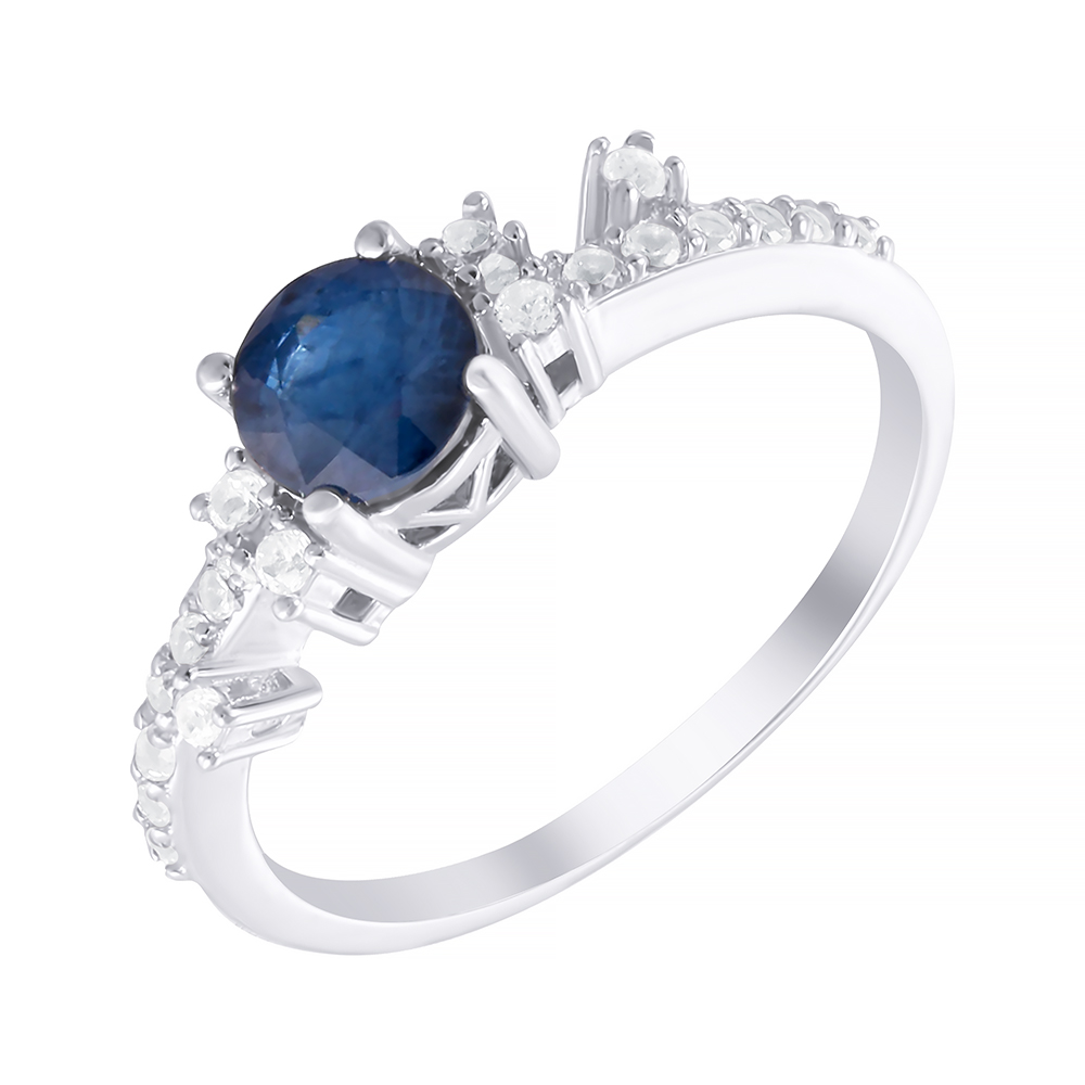 Серебряное кольцо 925 пробы, камни - корунд, топаз белый