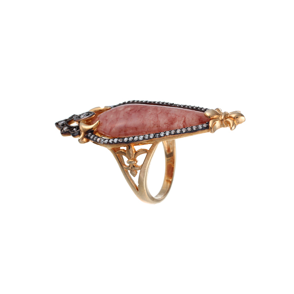 Кольцо из серебра 925 пробы с кварцем и фианитами