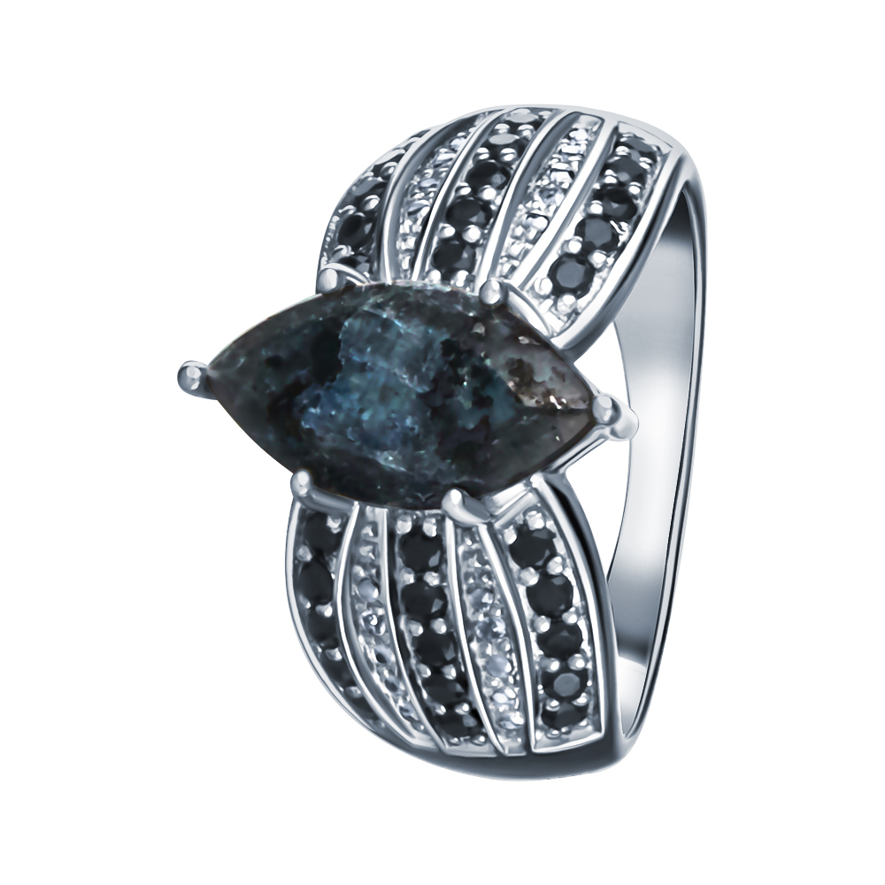 Кольцо из серебра 925 пробы с лабрадоритами, шпинелью и топазами