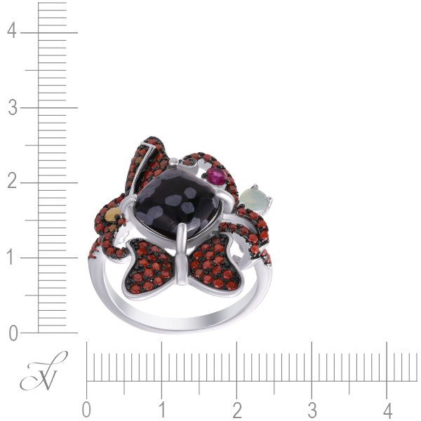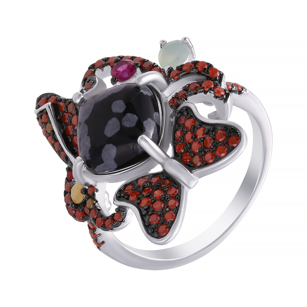 Кольцо из серебра 925 пробы с обсидианом и фианитами