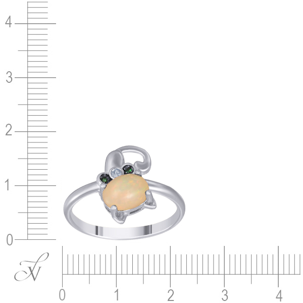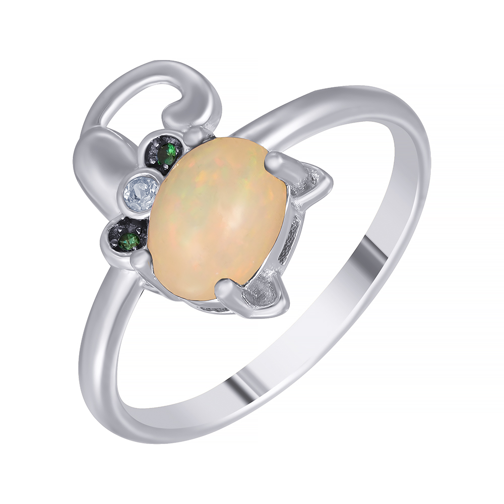 Кольцо из серебра 925 пробы с опалами и фианитами