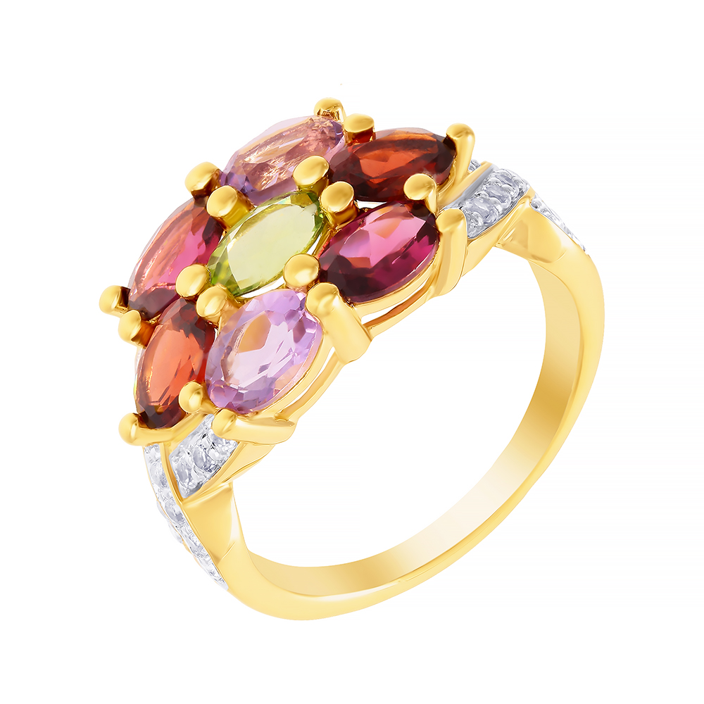 Кольцо из серебра 925 пробы с перидотами, гранатами, родолитами, аметистами и топазами
