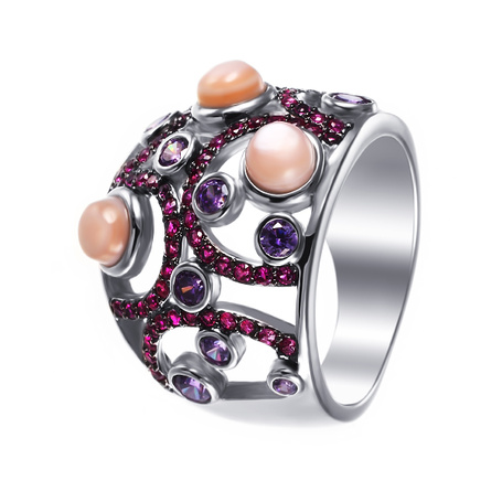 Кольцо из серебра 925 пробы с перламутром и фианитами