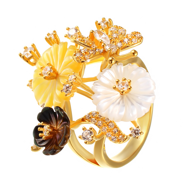 Кольцо из серебра 925 пробы с перламутром и фианитами