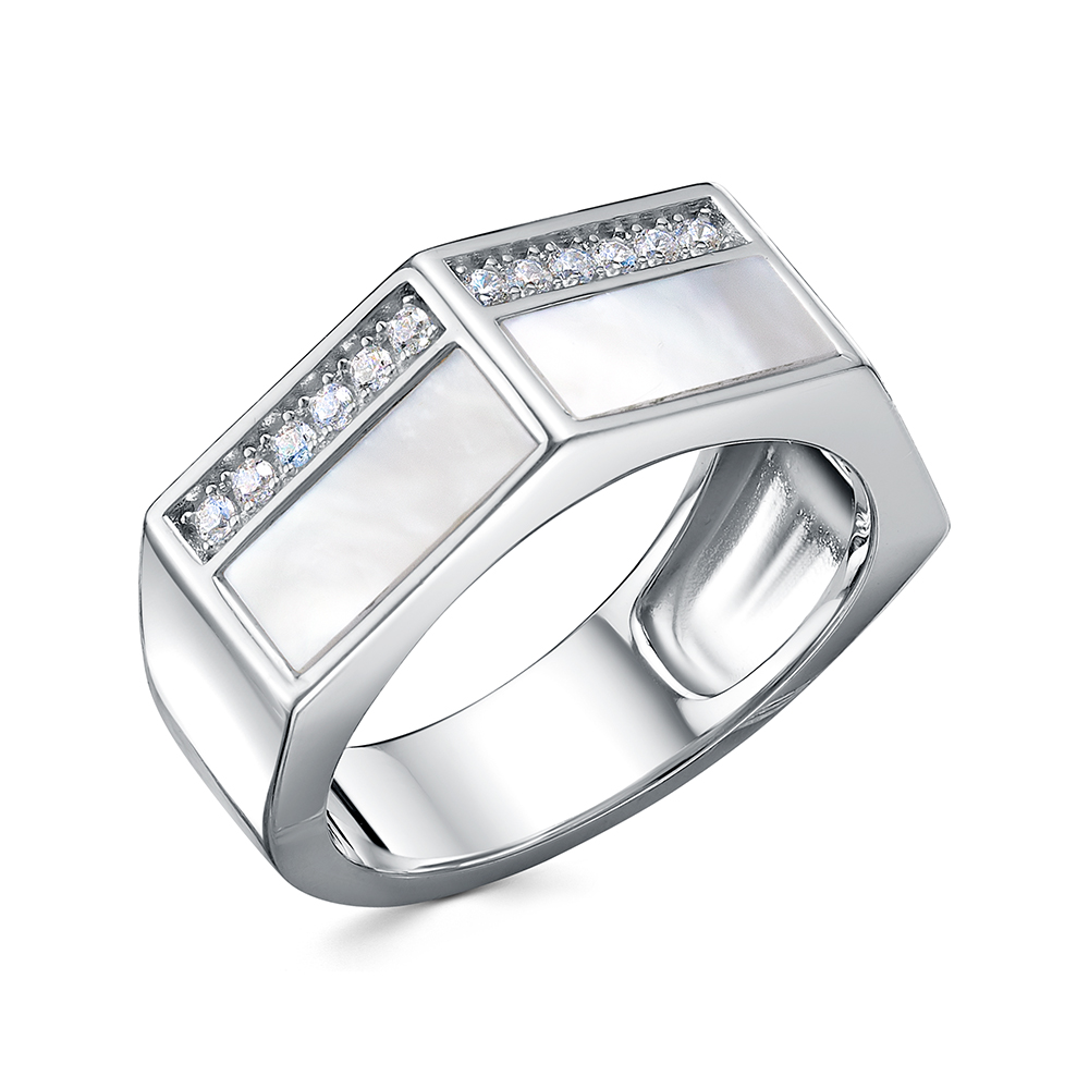 Кольцо из серебра 925 пробы с перламутром и фианитами