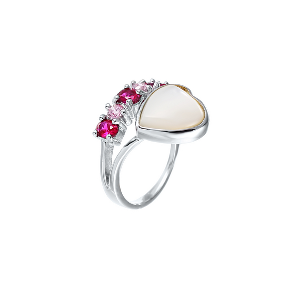 Кольцо из серебра 925 пробы с перламутром, рубинами синтетическими и фианитами