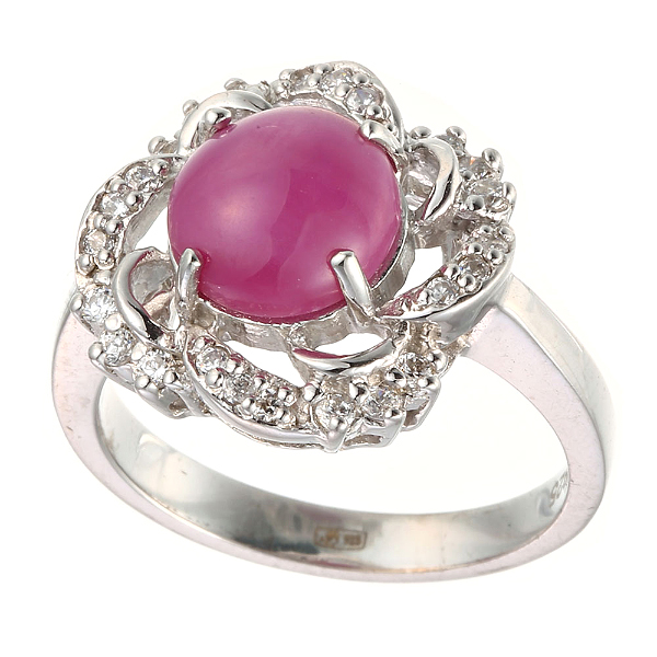 Кольцо из серебра 925 пробы с рубином облагороженным и фианитами