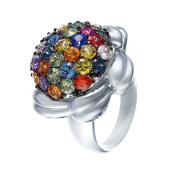 Серебряное кольцо 925 пробы, камни - сапфир цветной - 33шт. вес 4.49 карата