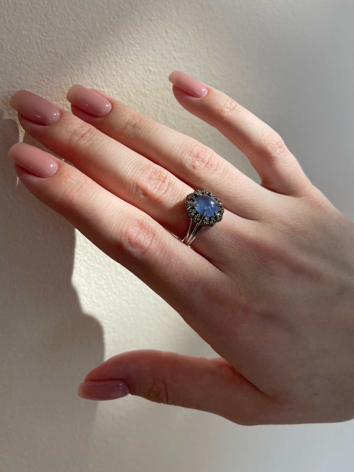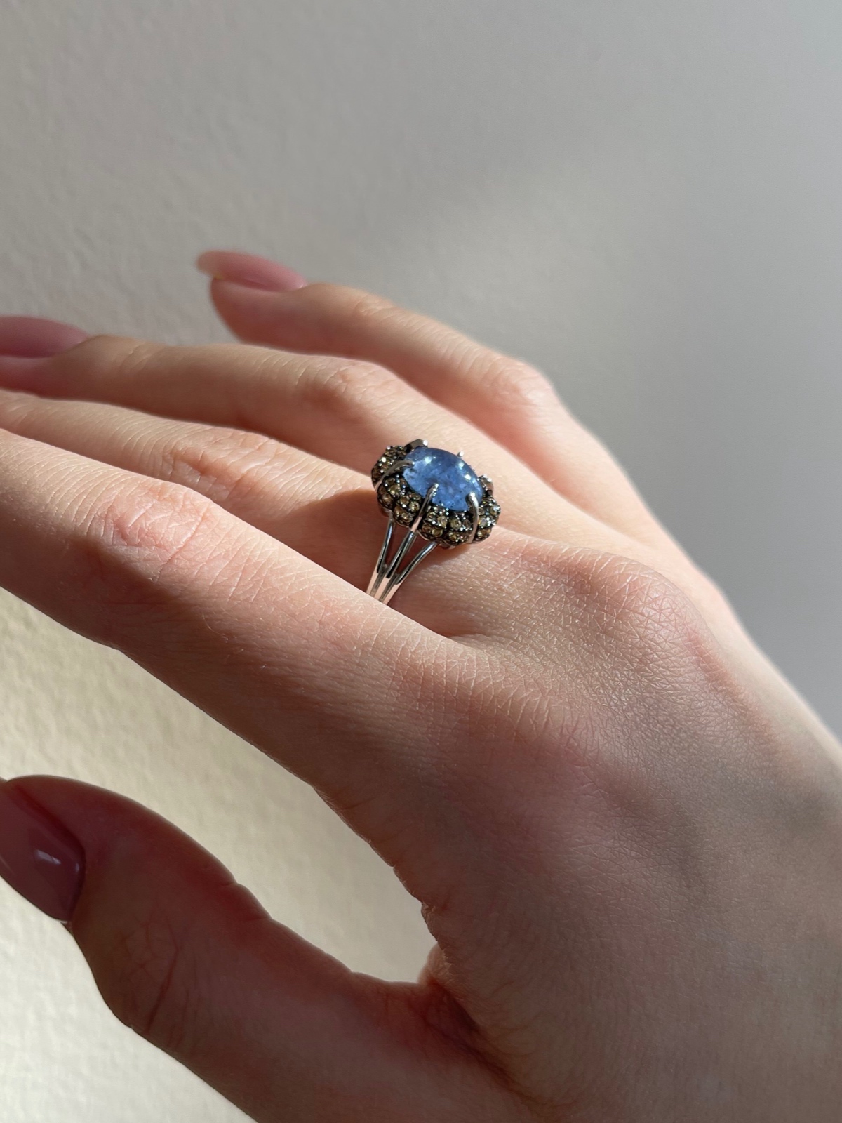 Кольцо из серебра 925 пробы с сапфирами и танзанитами