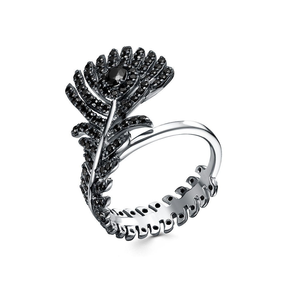 Серебряное кольцо 925 пробы, камни - шпинель черный