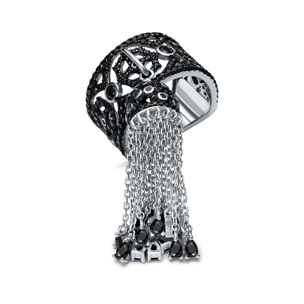 Серебряное кольцо 925 пробы, камни - шпинель черный