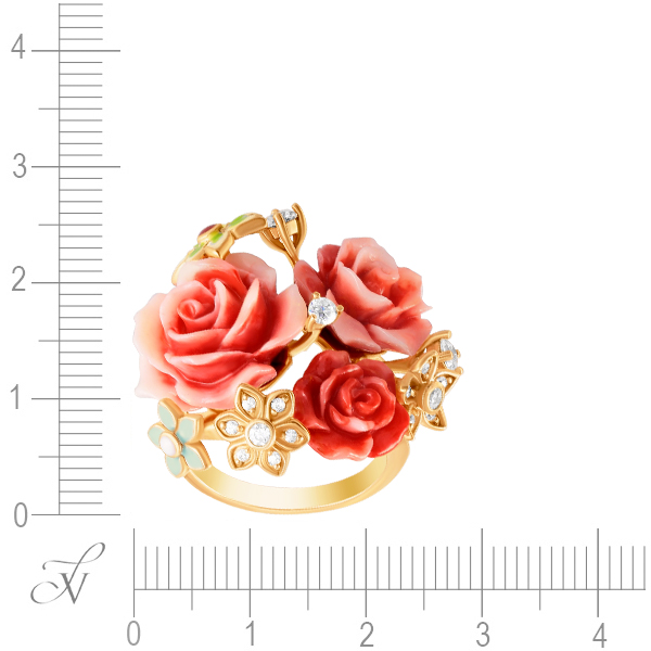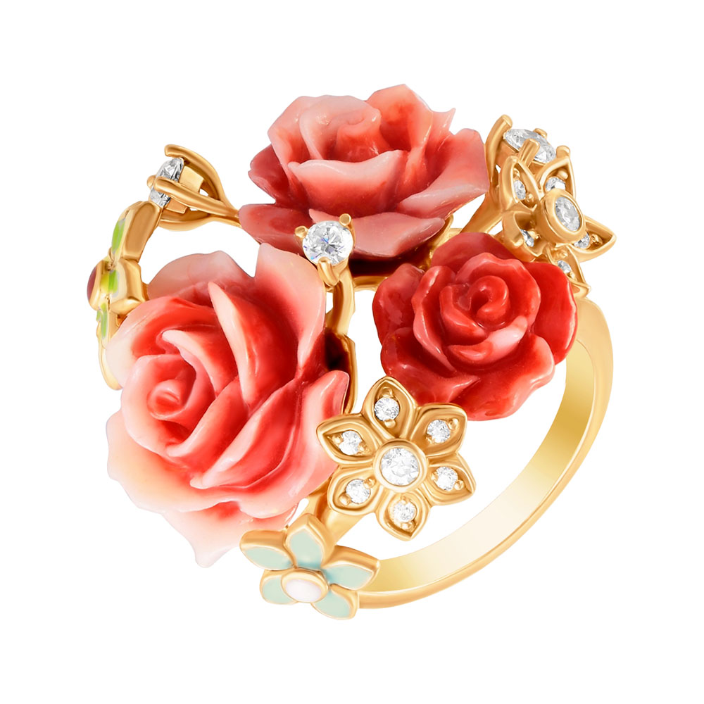 Кольцо из серебра 925 пробы с силиконом, эмалью и фианитами
