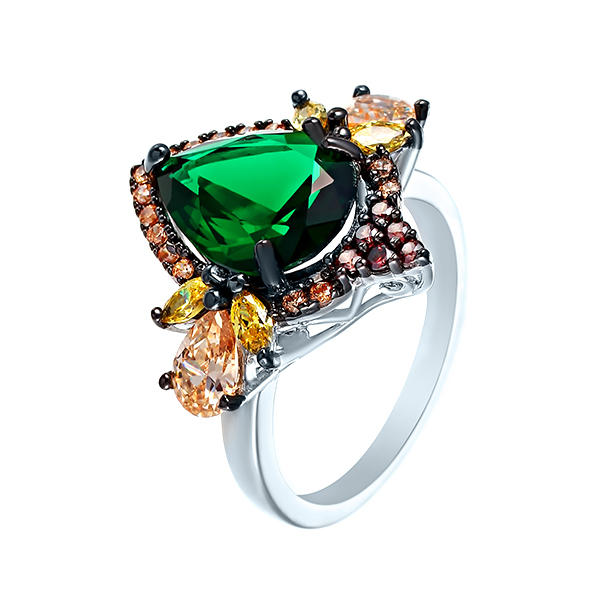 Кольцо из серебра 925 пробы с ювелирным стеклом и фианитами