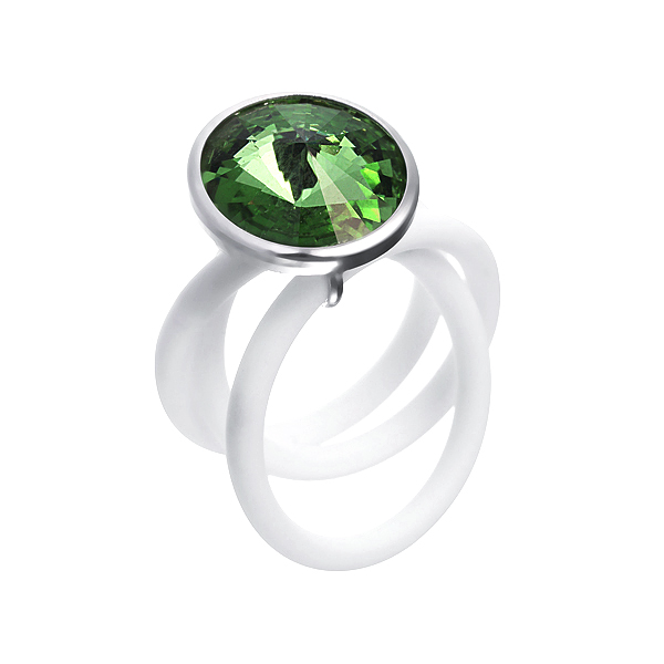 Кольцо из серебра 925 пробы с ювелирным стеклом и каучуком