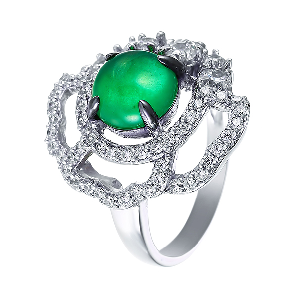 Кольцо из серебра 925 пробы с жадеитом и фианитами