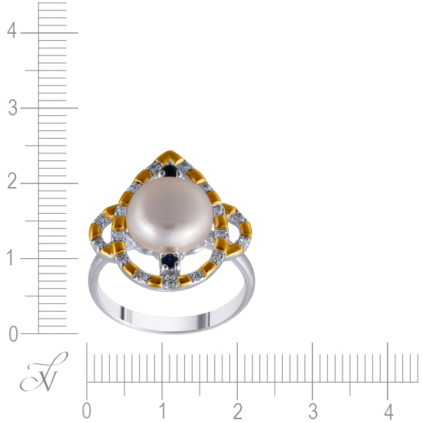 Кольцо из серебра 925 пробы с жемчугами, корундами и фианитами