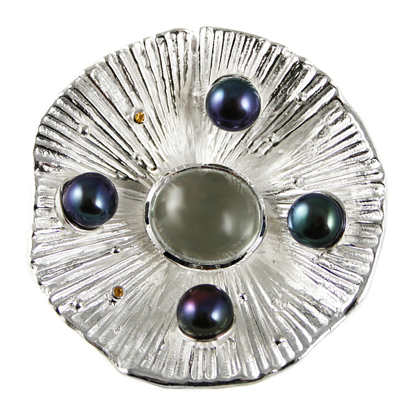 Подвеска из серебра 925 пробы с аметистом, цитринами и жемчугами