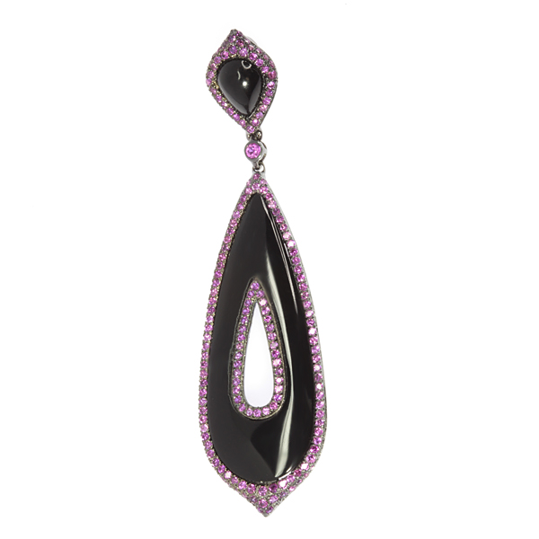 Подвеска из серебра 925 пробы с ониксом и рубинами синтетическими