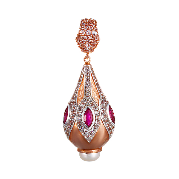 Подвеска из серебра 925 пробы с рубинами облагороженными, жемчугом и фианитами