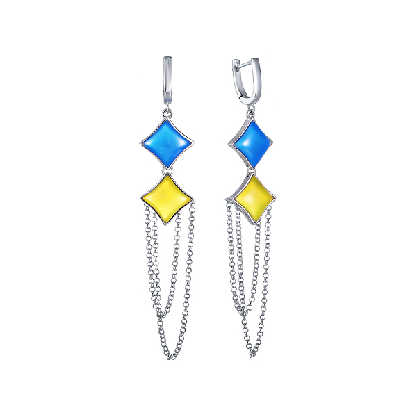 Серебряные серьги 925 пробы, камни - агат голубой, агат зеленый