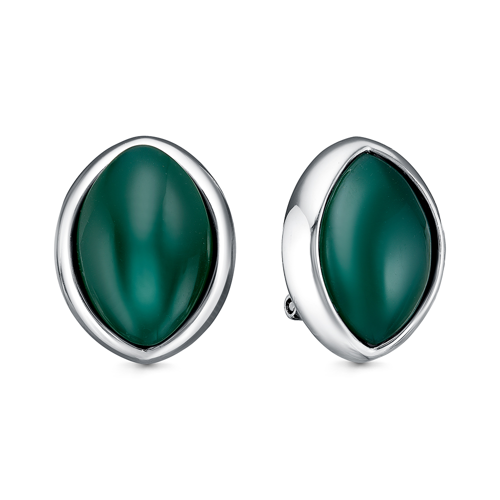 Серебряные серьги 925 пробы, камни - агат зеленый