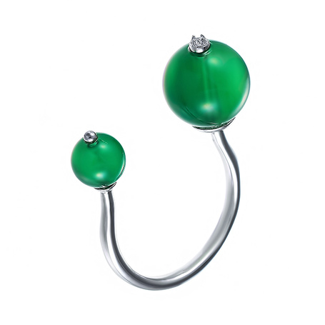 Серебряные серьги 925 пробы, камни - агат зеленый - 4шт., фианит
