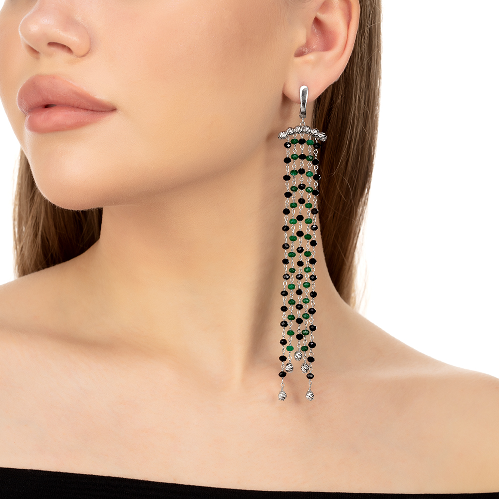Серьги из серебра 925 пробы с агатом и шпинелью
