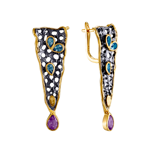 Серьги из серебра 925 пробы с аметистами и топазами лондон