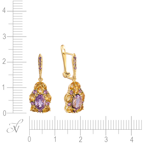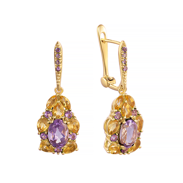 Серьги из серебра 925 пробы с аметистами и цитринами