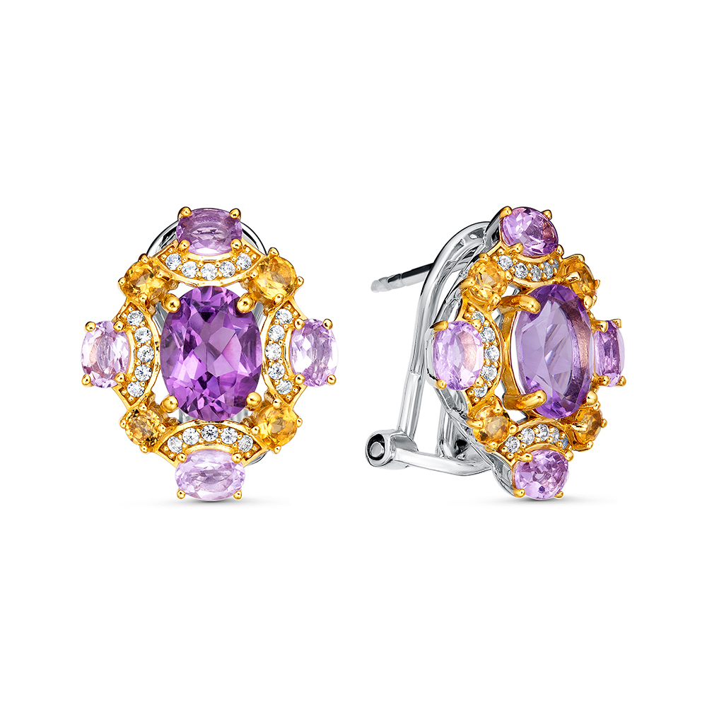 Серьги из серебра 925 пробы с аметистами, цитринами и фианитами