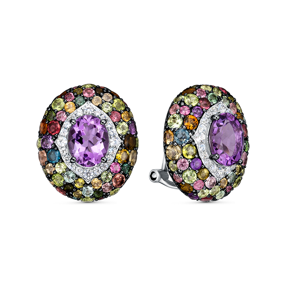 Серьги из серебра 925 пробы с аметистами, турмалинами, перидотами и фианитами