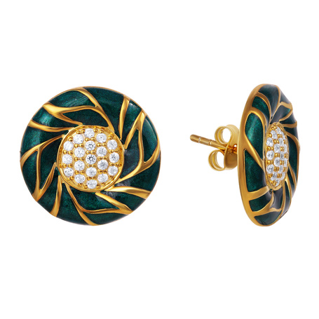 Серебряные серьги 925 пробы, камни - фианит, эмаль