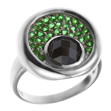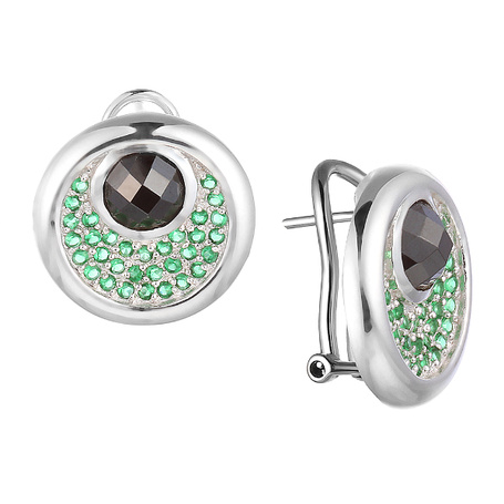 Серебряные серьги 925 пробы, камни - фианит черный - 2шт., фианит зеленый