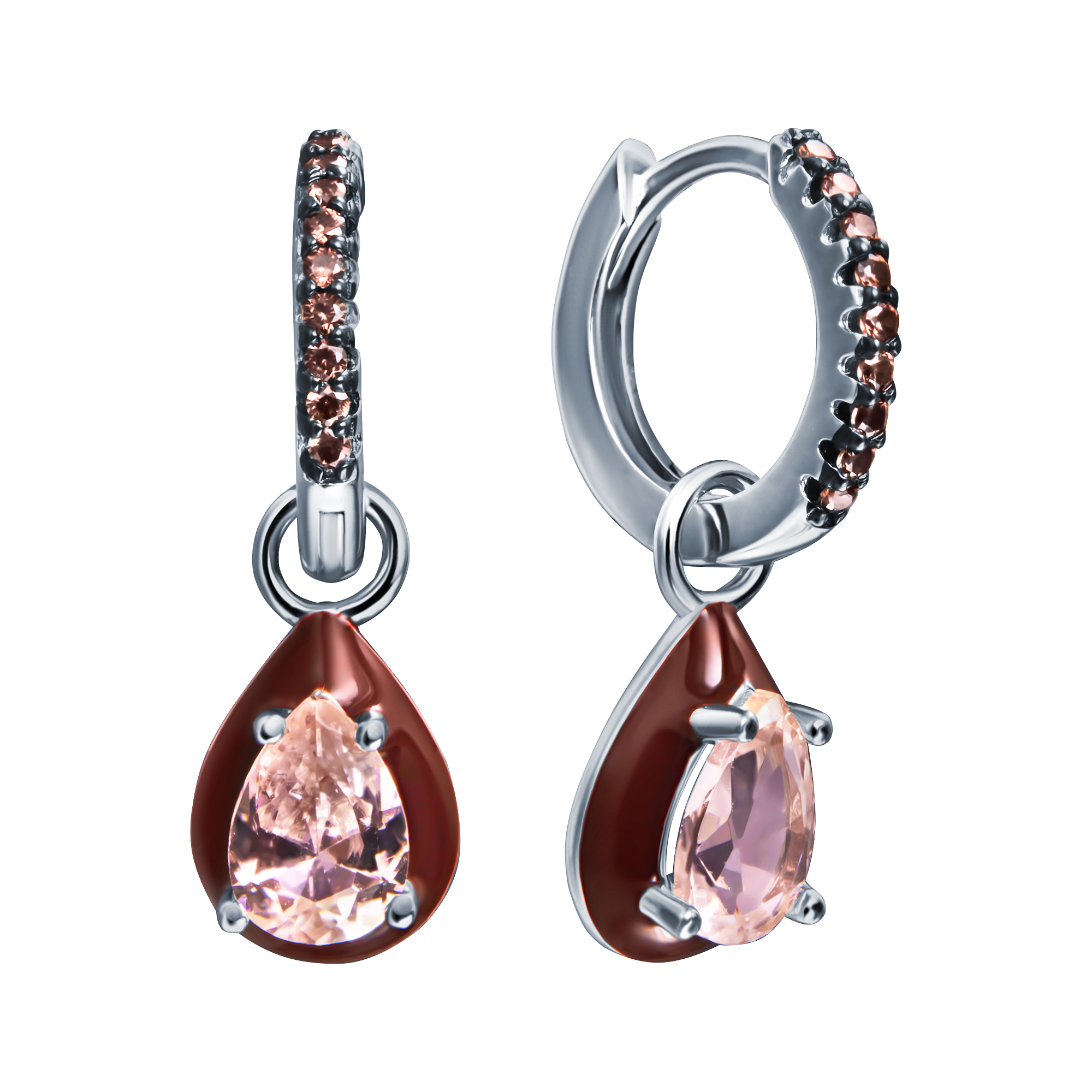 Серьги из серебра 925 пробы с фианитами и эмалью