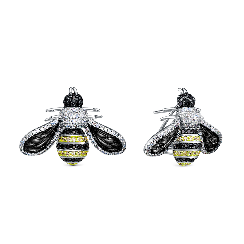 Серьги из серебра 925 пробы с фианитами и эмалью