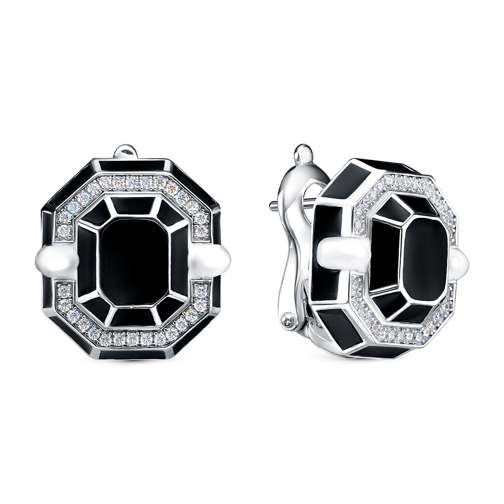 Серьги из серебра 925 пробы с фианитами и эмалью