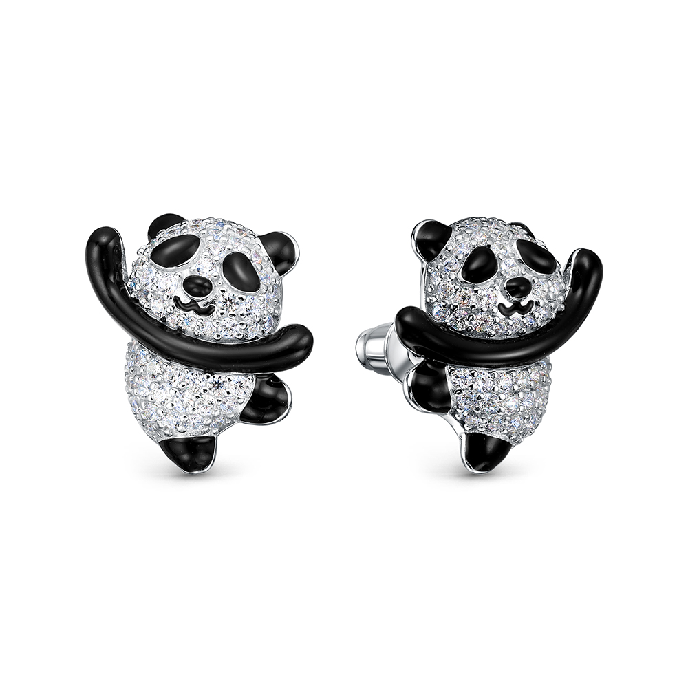 Серьги из серебра 925 пробы с фианитами и эмалью